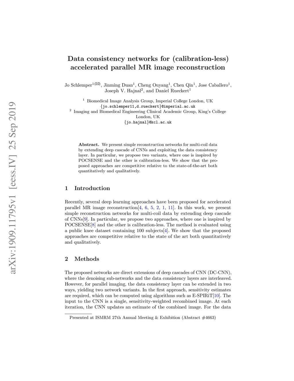 We present simple reconstruction networks for multi-coil data by extending deep cascade of CNN's and exploiting the data consistency layer. In particular, we propose two variants, where one is inspired by POCSENSE and the other is calibration-less. We show that the proposed approaches are competitive relative to the state of the art both quantitatively and qualitatively.