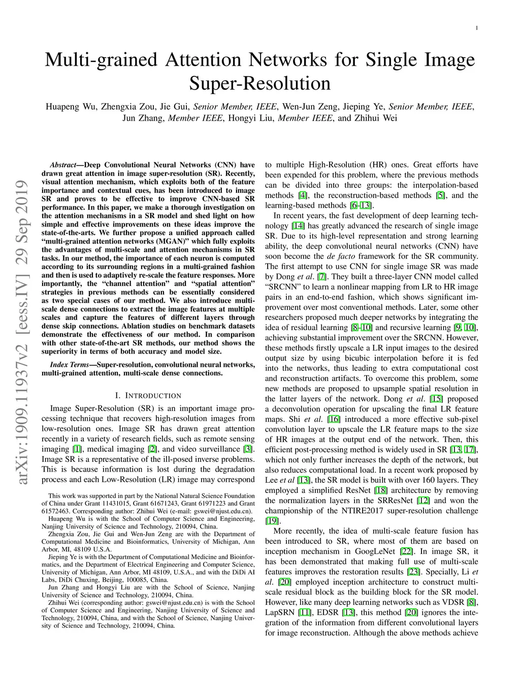 Multi-grained Attention Networks for Single Image Super-Resolution