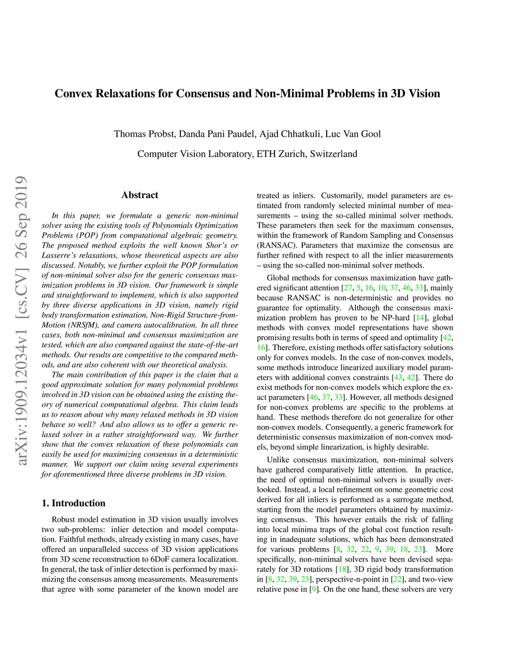 In this paper, we formulate a generic non-minimal solver using the existing tools of Polynomials Optimization Problems (POP) from computational algebraic geometry. The proposed method exploits the well known Shor's or Lasserre's relaxations, whose theoretical aspects are also discussed. Notably, we further exploit the POP formulation of non-minimal solver also for the generic consensus maximization problems in 3D vision. Our framework is simple and straightforward to implement, which is also supported by three diverse applications in 3D vision, namely rigid body transformation estimation, Non-Rigid Structure-from-Motion (NRSfM), and camera autocalibration. In all three cases, both non-minimal and consensus maximization are tested, which are also compared against the state-of-the-art methods. Our results are competitive to the compared methods, and are also coherent with our theoretical analysis. The main contribution of this paper is the claim that a good approximate solution for many polynomial problems involved in 3D vision can be obtained using the existing theory of numerical computational algebra. This claim leads us to reason about why many relaxed methods in 3D vision behave so well? And also allows us to offer a generic relaxed solver in a rather straightforward way. We further show that the convex relaxation of these polynomials can easily be used for maximizing consensus in a deterministic manner. We support our claim using several experiments for aforementioned three diverse problems in 3D vision.