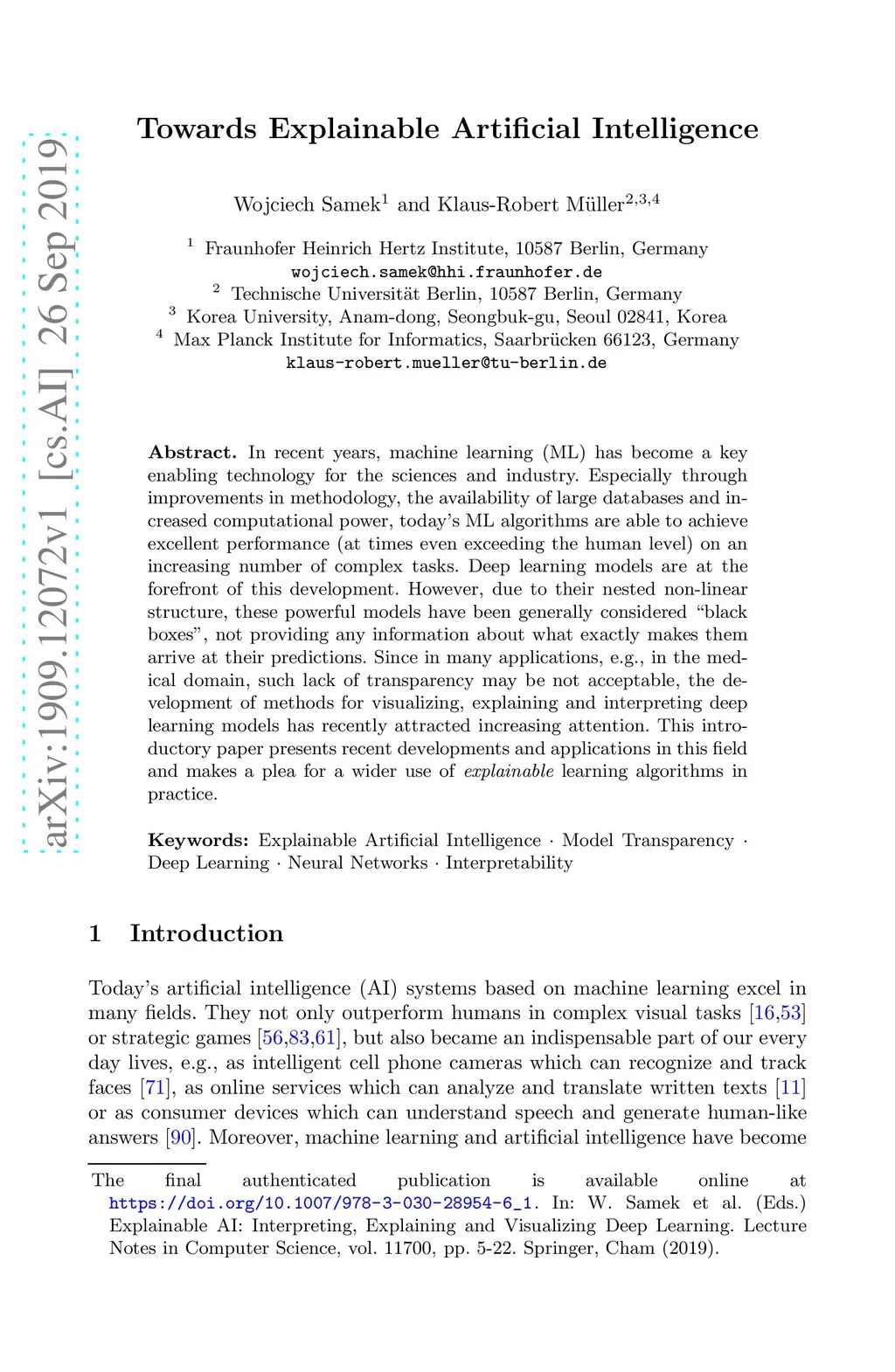 Towards Explainable Artificial Intelligence