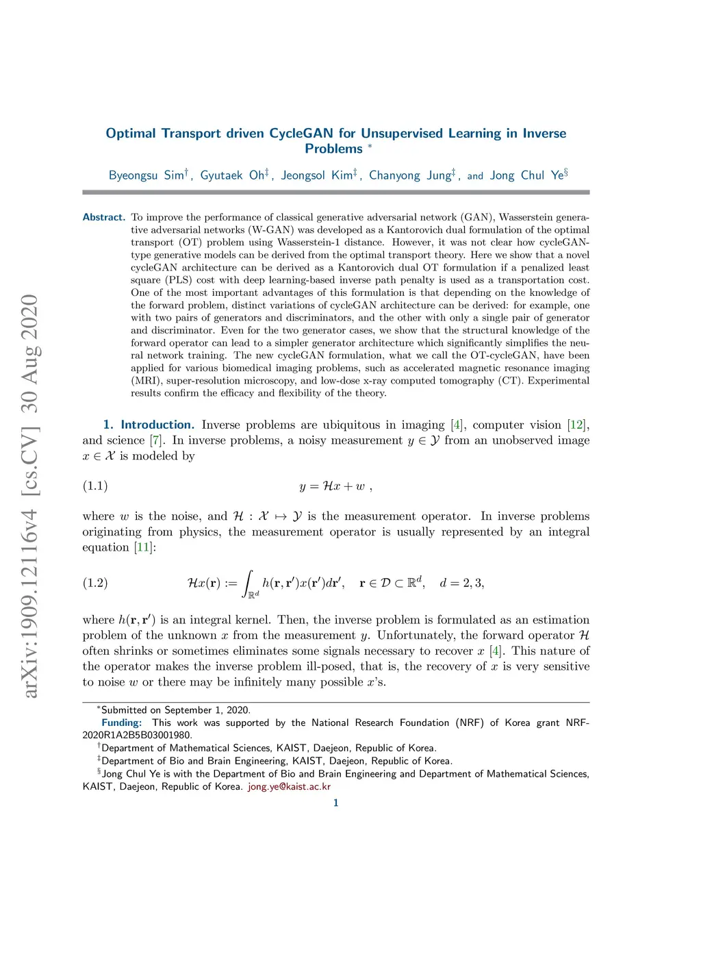 Optimal Transport driven CycleGAN for Unsupervised Learning in Inverse