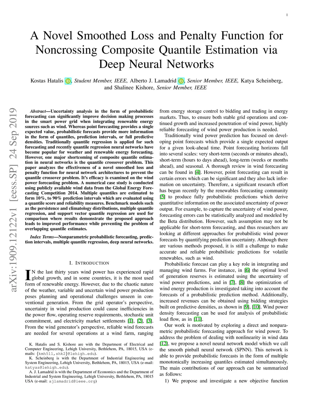 Uncertainty analysis in the form of probabilistic forecasting can significantly improve decision making processes in the smart power grid when integrating renewable energy sources such as wind. Whereas point forecasting provides a single expected value, probabilistic forecasts provide more information in the form of quantiles, prediction intervals, or full predictive densities. Traditionally quantile regression is applied for such forecasting and recently quantile regression neural networks have become popular for weather and renewable energy forecasting. However, one major shortcoming of composite quantile estimation in neural networks is the quantile crossover problem. This paper analyzes the effectiveness of a novel smoothed loss and penalty function for neural network architectures to prevent the quantile crossover problem. Its efficacy is examined on the wind power forecasting problem. A numerical case study is conducted using publicly available wind data from the Global Energy Forecasting Competition 2014. Multiple quantiles are estimated to form 10\%, to 90\% prediction intervals which are evaluated using a quantile score and reliability measures. Benchmark models such as the persistence and climatology distributions, multiple quantile regression, and support vector quantile regression are used for comparison where results demonstrate the proposed approach leads to improved performance while preventing the problem of overlapping quantile estimates.