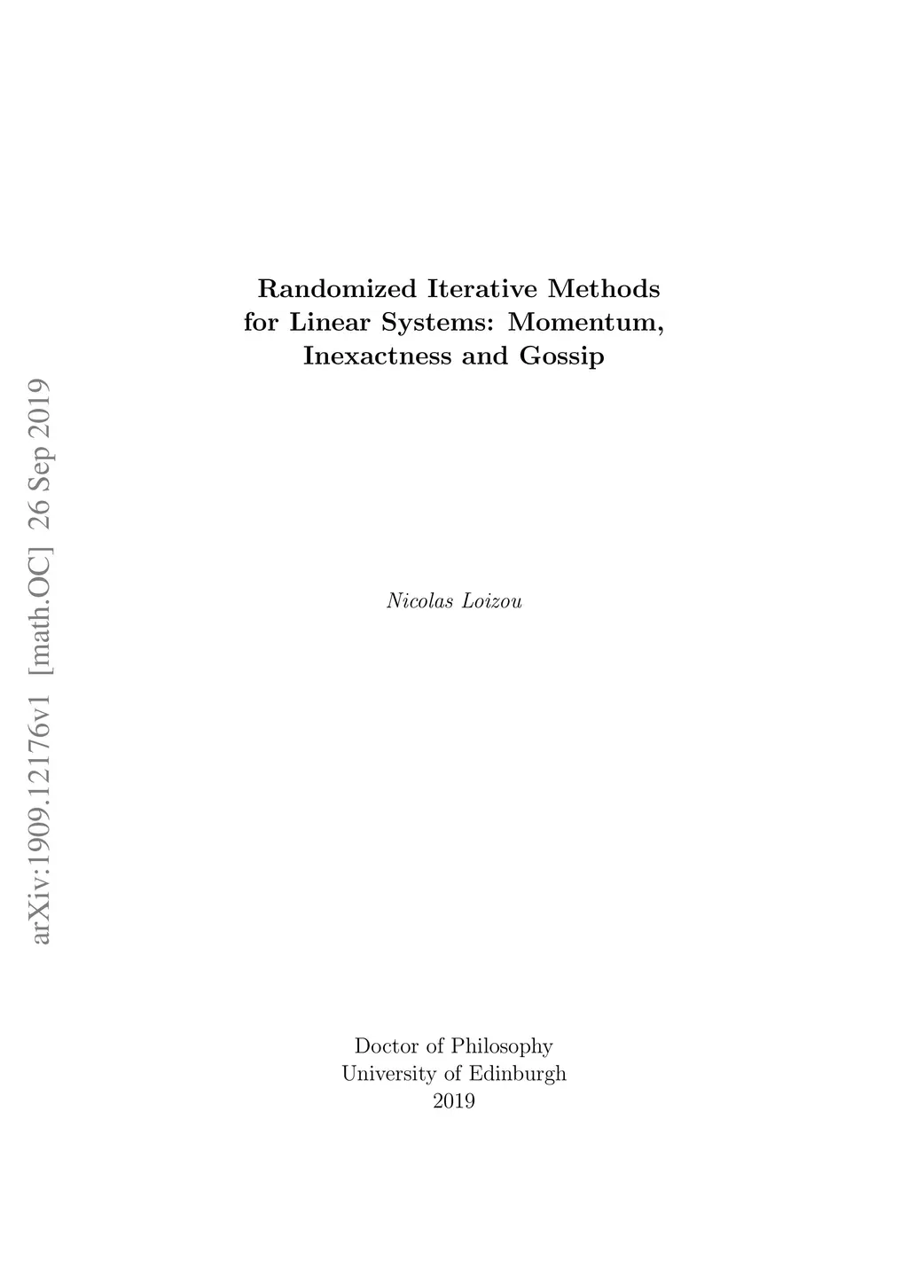 Randomized Iterative Methods for Linear Systems: Momentum, Inexactness