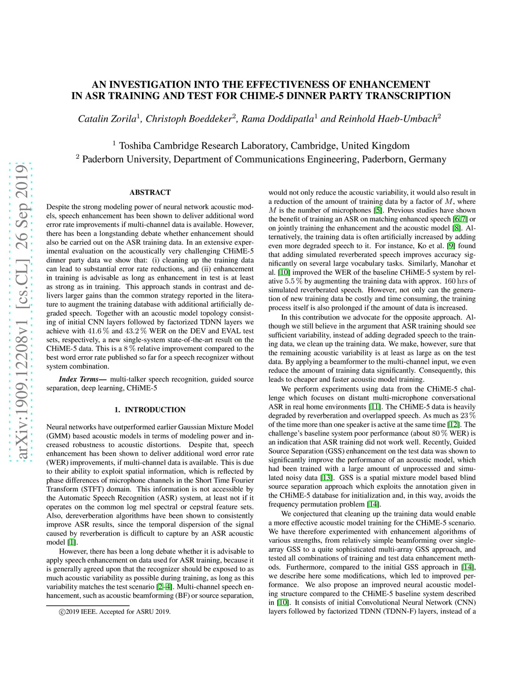 Despite the strong modeling power of neural network acoustic models, speech enhancement has been shown to deliver additional word error rate improvements if multi-channel data is available. However, there has been a longstanding debate whether enhancement should also be carried out on the ASR training data. In an extensive experimental evaluation on the acoustically very challenging CHiME-5 dinner party data we show that: (i) cleaning up the training data can lead to substantial error rate reductions, and (ii) enhancement in training is advisable as long as enhancement in test is at least as strong as in training. This approach stands in contrast and delivers larger gains than the common strategy reported in the literature to augment the training database with additional artificially degraded speech. Together with an acoustic model topology consisting of initial CNN layers followed by factorized TDNN layers we achieve with 41.6% and 43.2% WER on the DEV and EVAL test sets, respectively, a new single-system state-of-the-art result on the CHiME-5 data. This is a 8% relative improvement compared to the best word error rate published so far for a speech recognizer without system combination.
