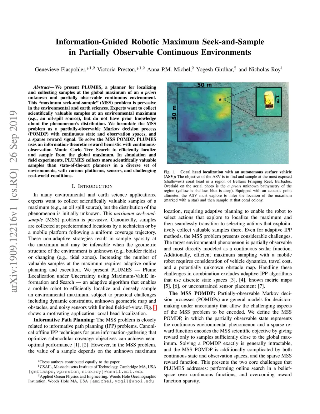 We present PLUMES, a planner to localizing and collecting samples at the global maximum of an a priori unknown and partially observable continuous environment. The "maximum-seek-and-sample" (MSS) problem is pervasive in the environmental and earth sciences. Experts want to collect scientifically valuable samples at an environmental maximum (e.g., an oil-spill source), but do not have prior knowledge about the phenomenon's distribution. We formulate the MSS problem as a partially-observable Markov decision process (POMDP) with continuous state and observation spaces, and a sparse reward signal. To solve the MSS POMDP, PLUMES uses an information-theoretic reward heuristic with continous-observation Monte Carlo Tree Search to efficiently localize and sample from the global maximum. In simulation and field experiments, PLUMES collects more scientifically valuable samples than state-of-the-art planners in a diverse set of environments, with various platforms, sensors, and challenging real-world conditions.