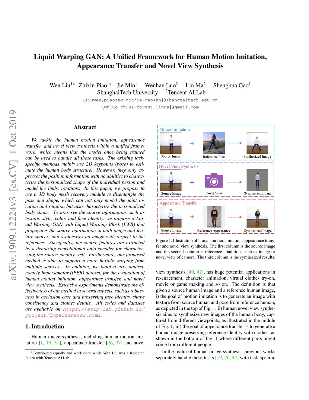 Liquid Warping GAN: A Unified Framework for Human Motion Imitation,