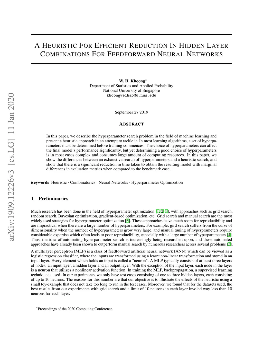 A Heuristic for Efficient Reduction in Hidden Layer Combinations For