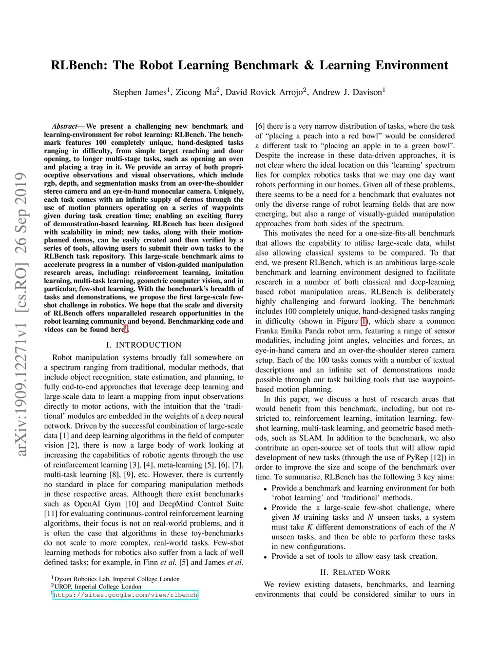 RLBench: The Robot Learning Benchmark & Learning Environment