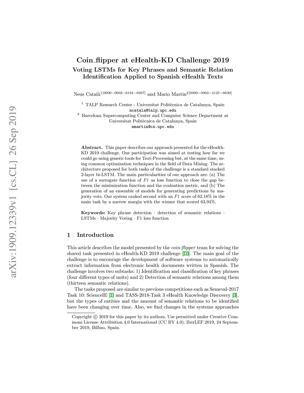 Coin_flipper at eHealth-KD Challenge 2019: Voting LSTMs for Key Phrases