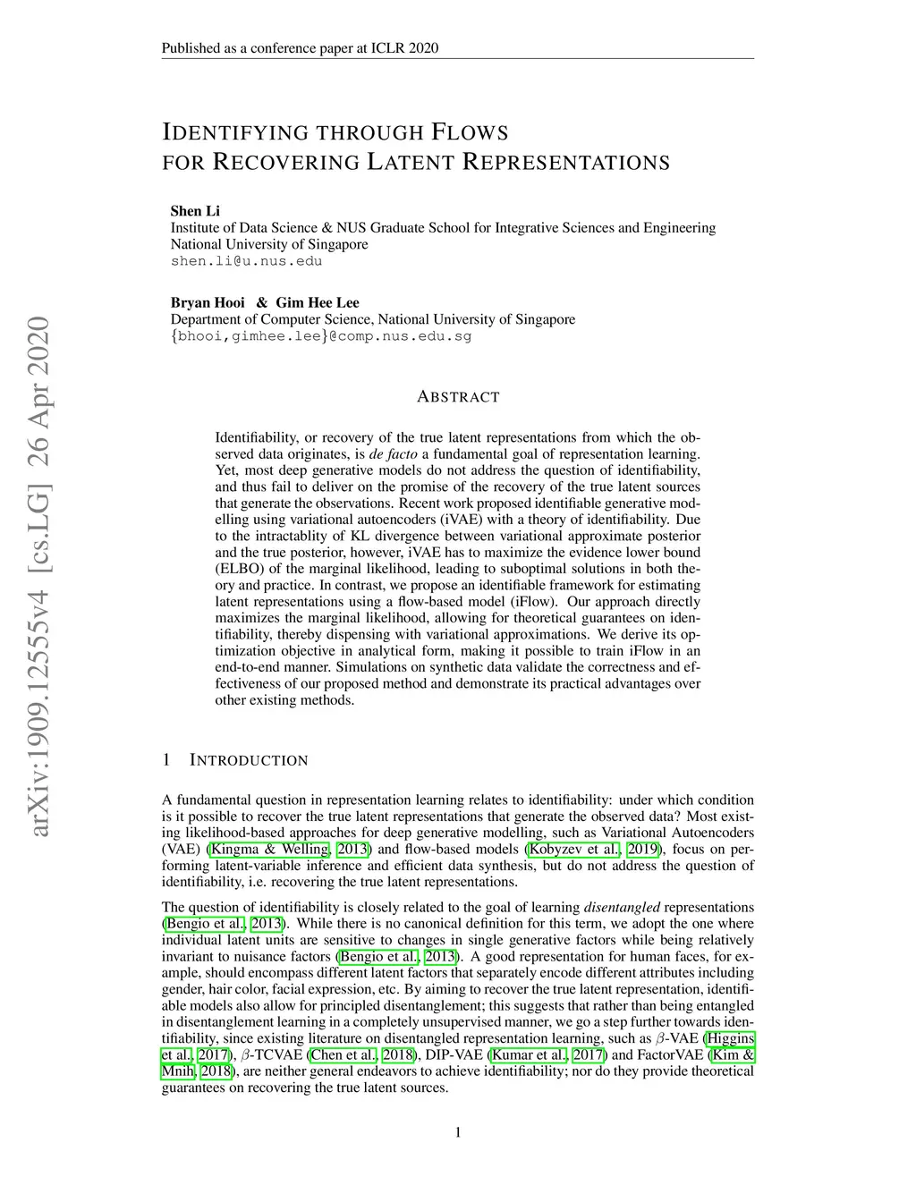 Identifying through Flows for Recovering Latent Representations