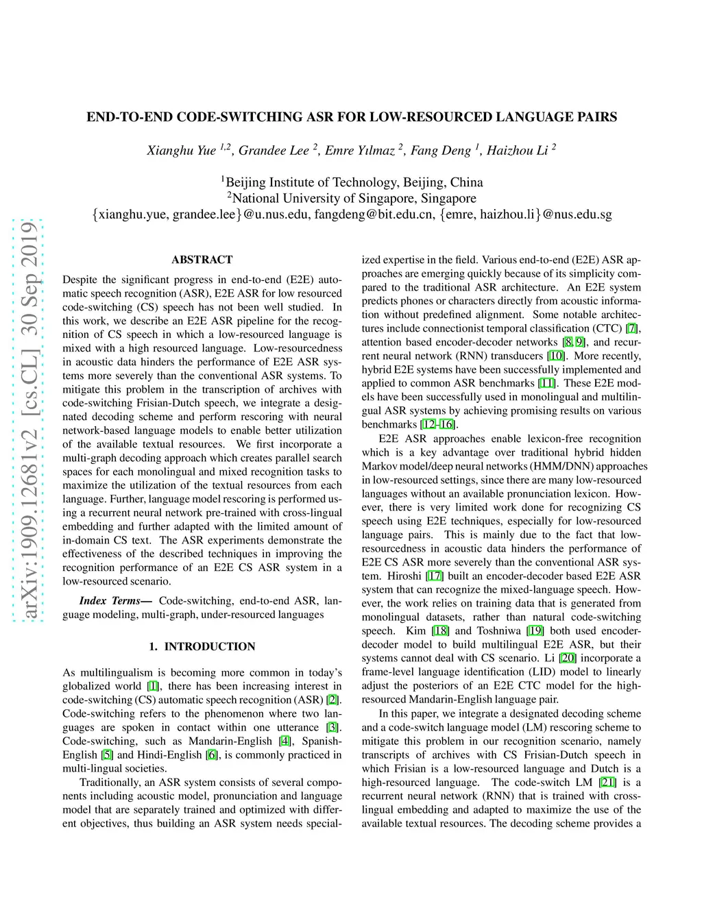 End-to-End Code-Switching ASR for Low-Resourced Language Pairs