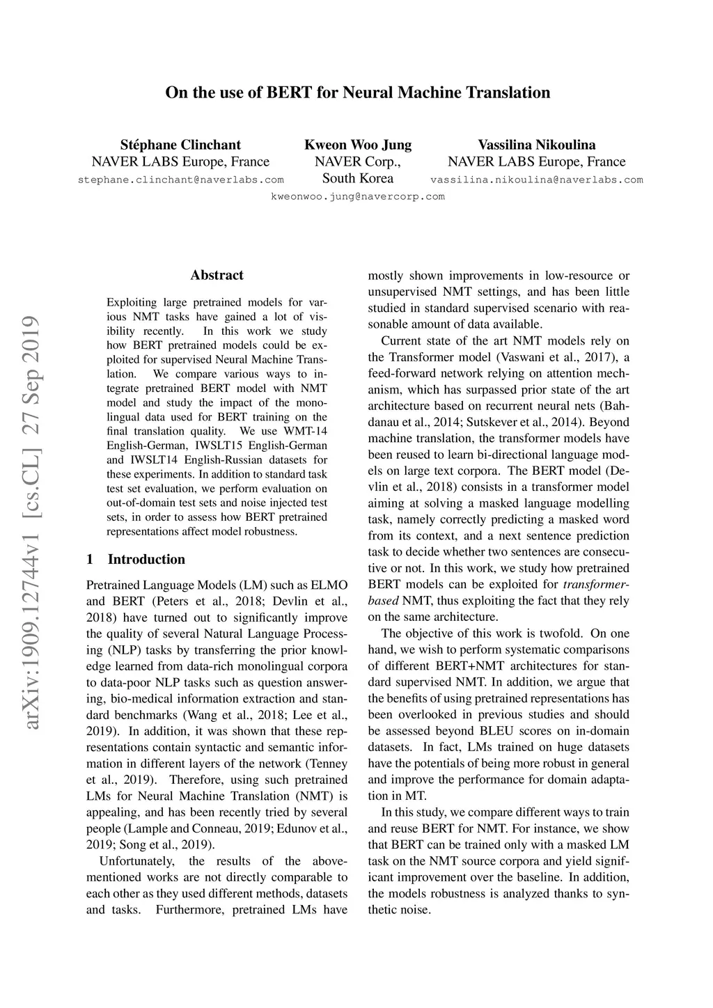 On the use of BERT for Neural Machine Translation