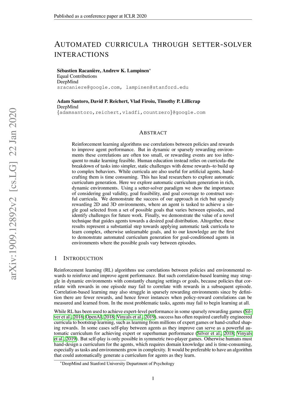 Automated curricula through setter-solver interactions
