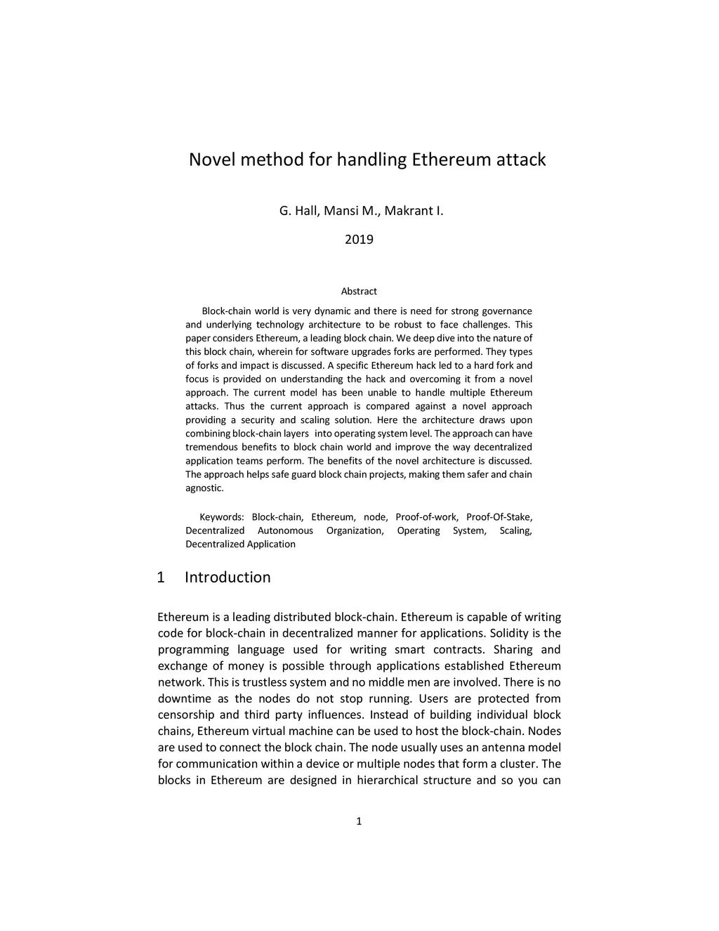 Block-chain world is very dynamic and there is need for strong governance and underlying technology architecture to be robust to face challenges. This paper considers Ethereum, a leading block chain. We deep dive into the nature of this block chain, wherein for software upgrades forks are performed. They types of forks and impact is discussed. A specific Ethereum hack led to a hard fork and focus is provided on understanding the hack and overcoming it from a novel approach. The current model has been unable to handle multiple Ethereum attacks. Thus the current approach is compared against a novel approach providing a security and scaling solution. Here the architecture draws upon combining block-chain layers into operating system level. The approach can have tremendous benefits to block chain world and improve the way decentralized application teams perform. The benefits of the novel architecture is discussed. The approach helps safe guard block chain projects, making them safer and chain agnostic.