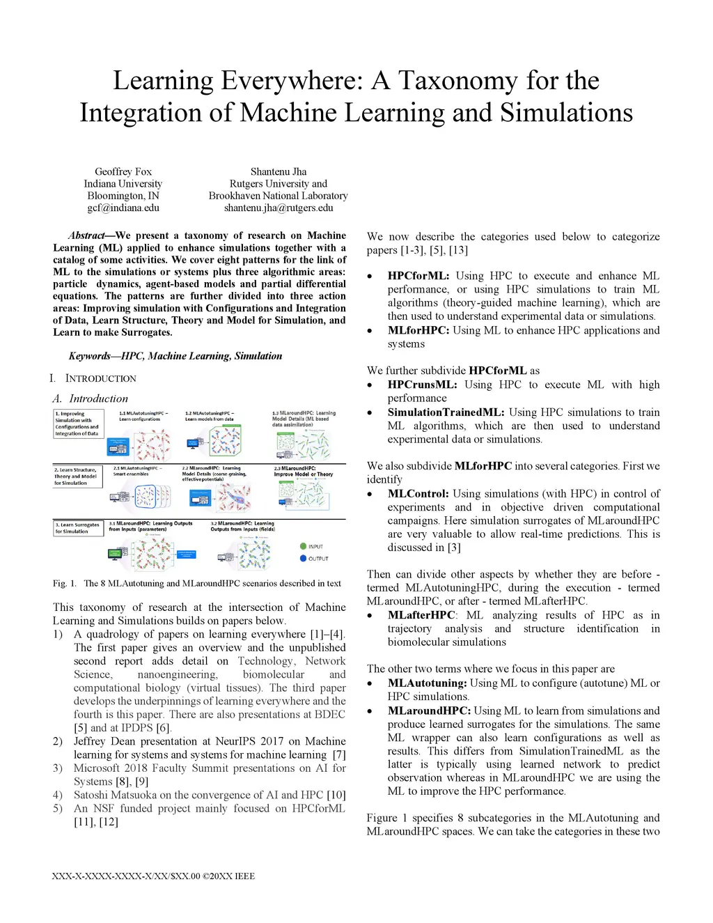 We present a taxonomy of research on Machine Learning (ML) applied to enhance simulations together with a catalog of some activities. We cover eight patterns for the link of ML to the simulations or systems plus three algorithmic areas: particle dynamics, agent-based models and partial differential equations. The patterns are further divided into three action areas: Improving simulation with Configurations and Integration of Data, Learn Structure, Theory and Model for Simulation, and Learn to make Surrogates.