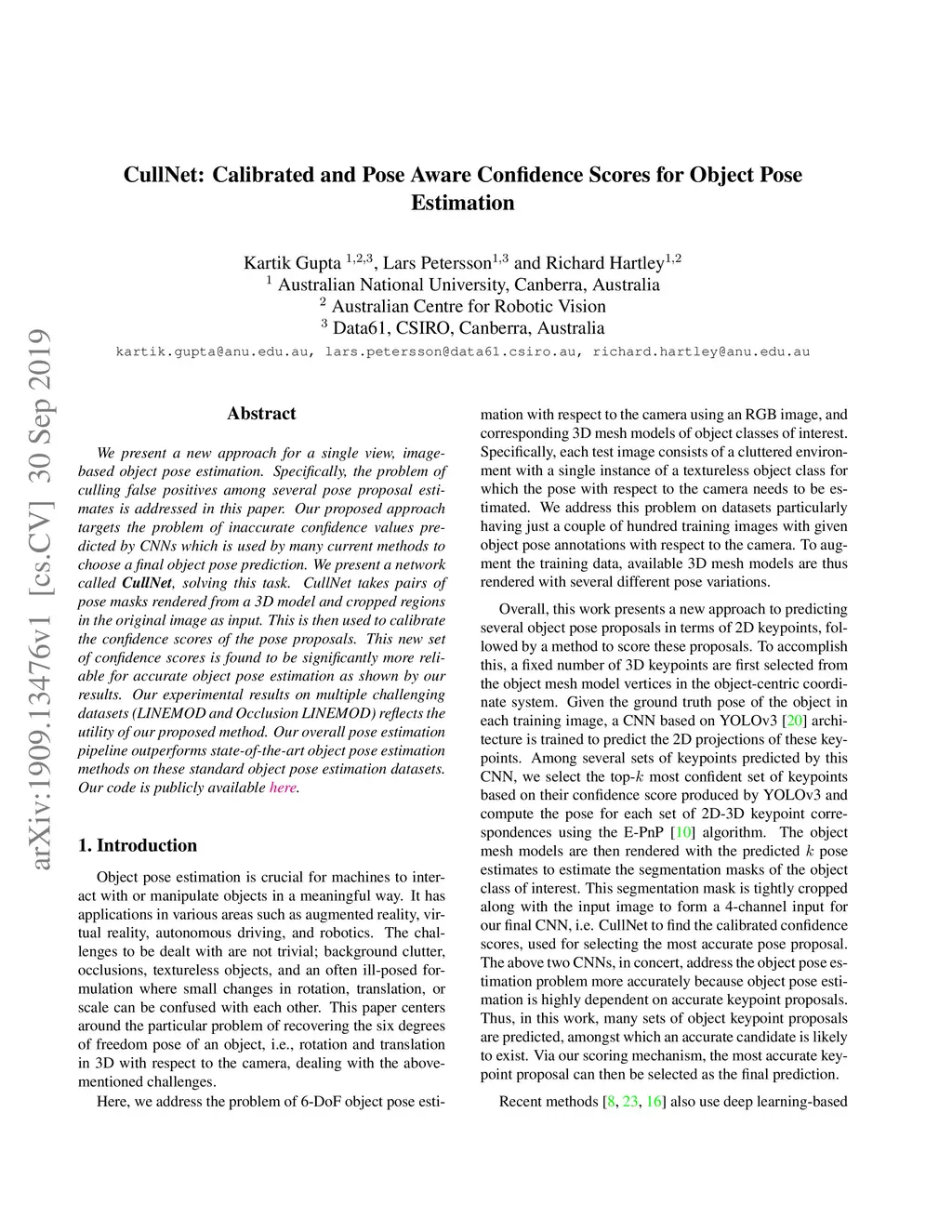 CullNet: Calibrated and Pose Aware Confidence Scores for Object Pose