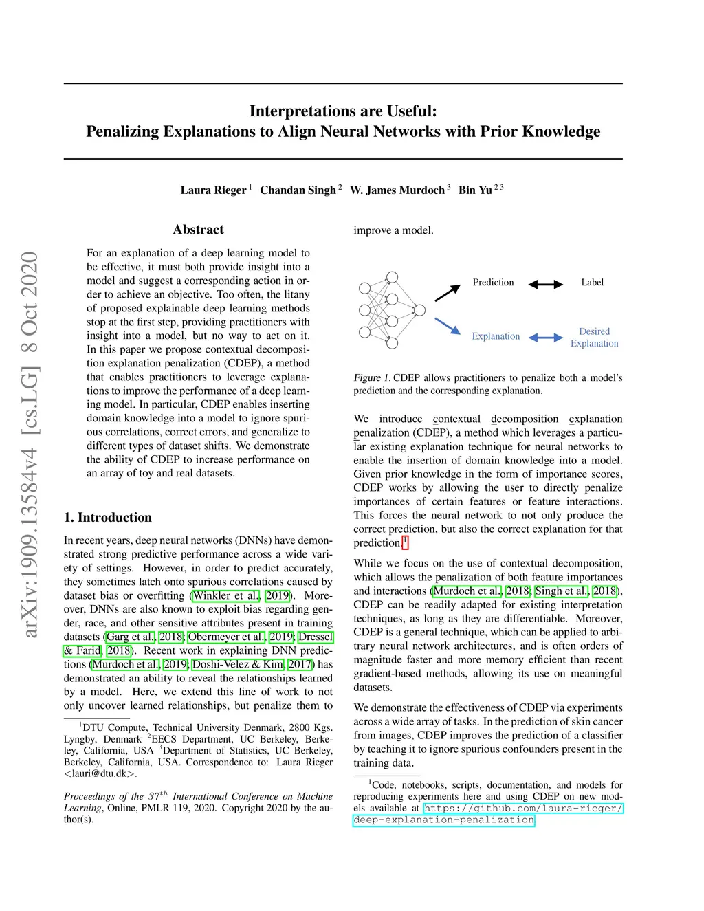For an explanation of a deep learning model to be effective, it must provide both insight into a model and suggest a corresponding action in order to achieve some objective. Too often, the litany of proposed explainable deep learning methods stop at the first step, providing practitioners with insight into a model, but no way to act on it. In this paper, we propose contextual decomposition explanation penalization (CDEP), a method which enables practitioners to leverage existing explanation methods in order to increase the predictive accuracy of deep learning models. In particular, when shown that a model has incorrectly assigned importance to some features, CDEP enables practitioners to correct these errors by directly regularizing the provided explanations. Using explanations provided by contextual decomposition (CD) (Murdoch et al., 2018), we demonstrate the ability of our method to increase performance on an array of toy and real datasets.