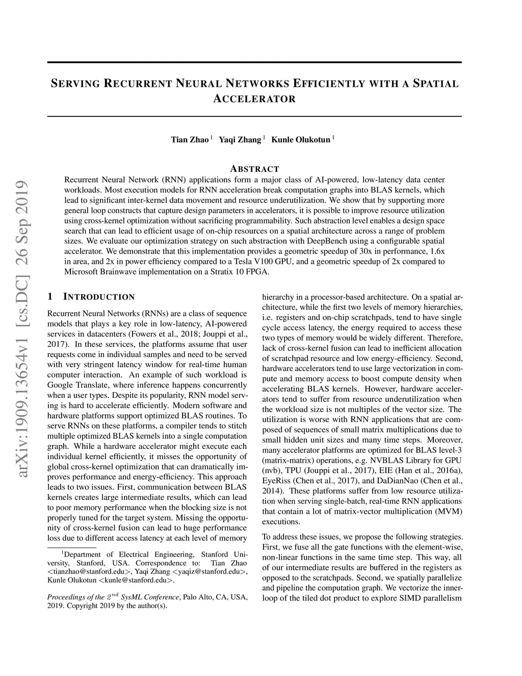 Serving Recurrent Neural Networks Efficiently with a Spatial Accelerator