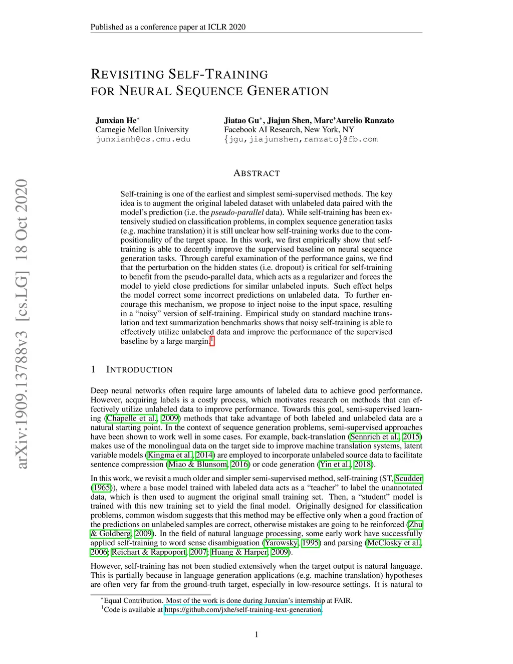 Revisiting Self-Training for Neural Sequence Generation