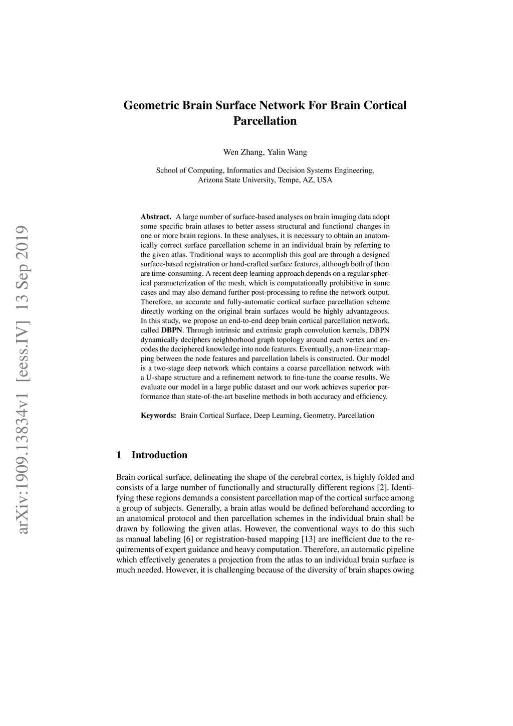 Geometric Brain Surface Network For Brain Cortical Parcellation