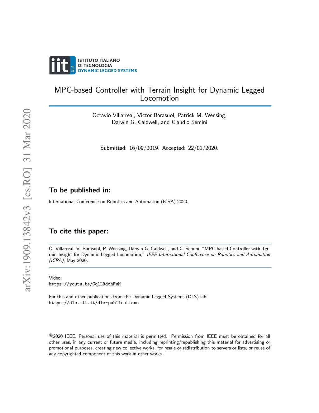 MPC-based Controller with Terrain Insight for Dynamic Legged Locomotion