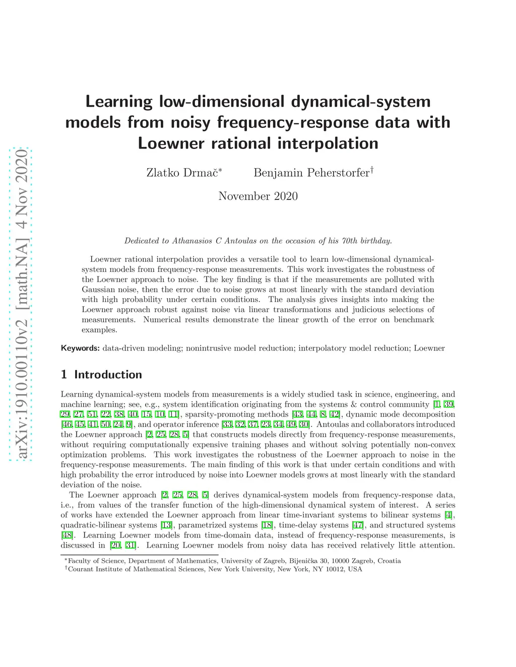 frequency-response data with Loewner rational interpolation