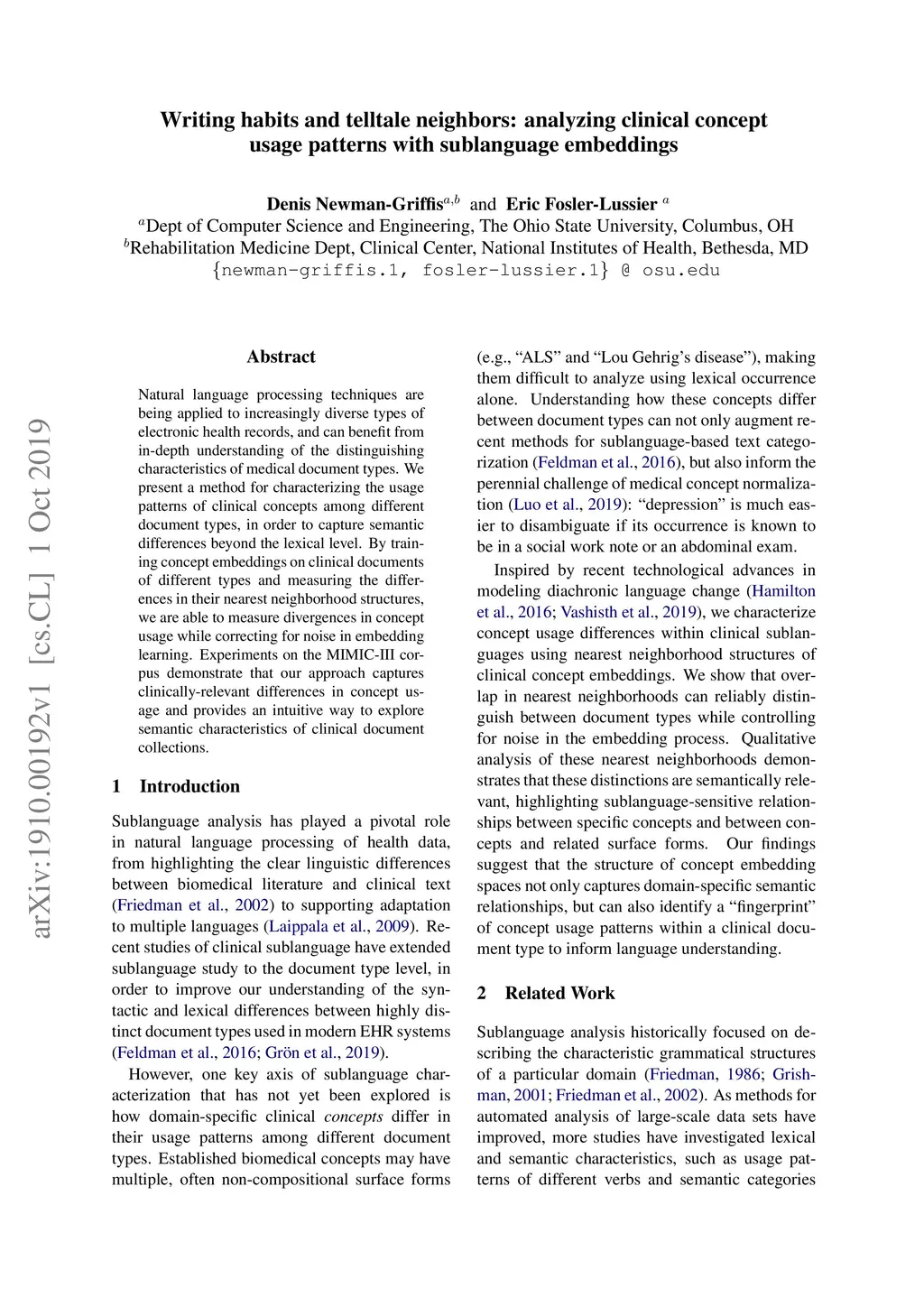 Writing habits and telltale neighbors: analyzing clinical concept usage