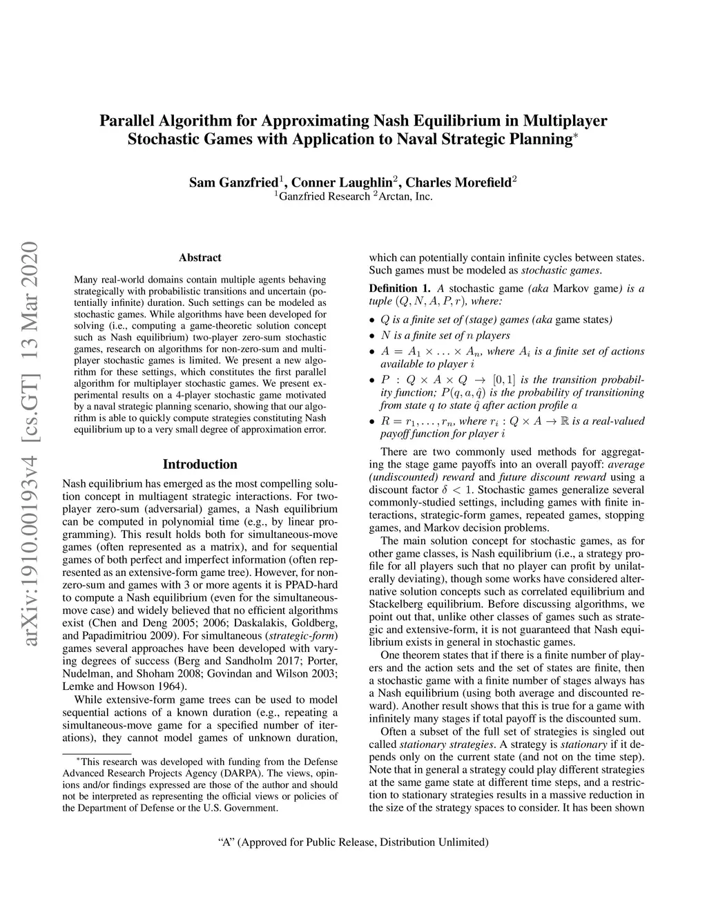 Stochastic Games with Application to Naval Strategic Planning