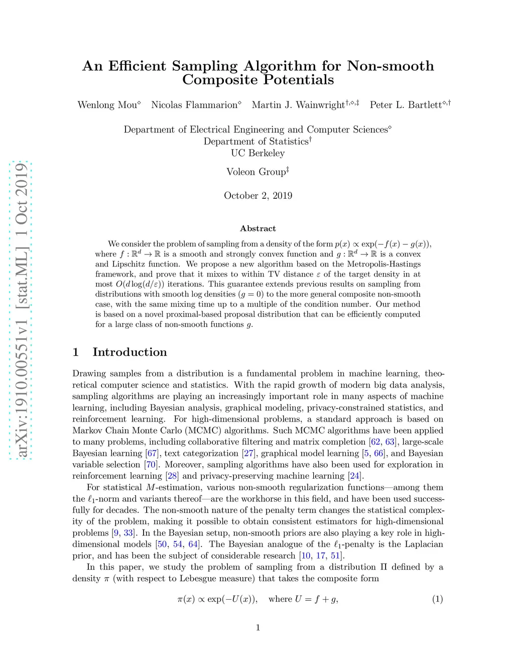 An Efficient Sampling Algorithm for Non-smooth Composite Potentials