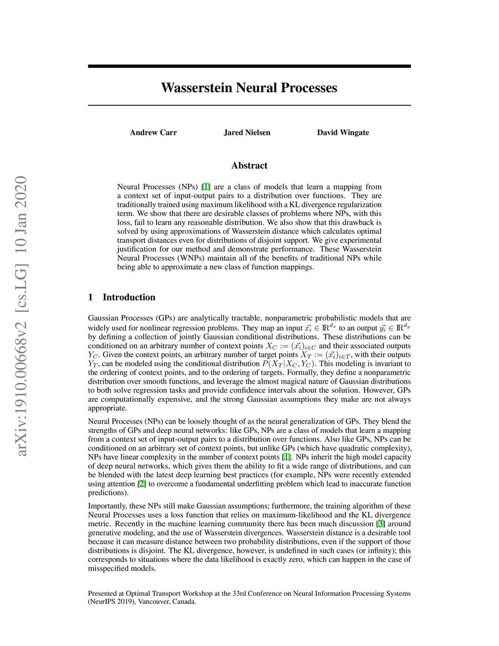 Wasserstein Neural Processes