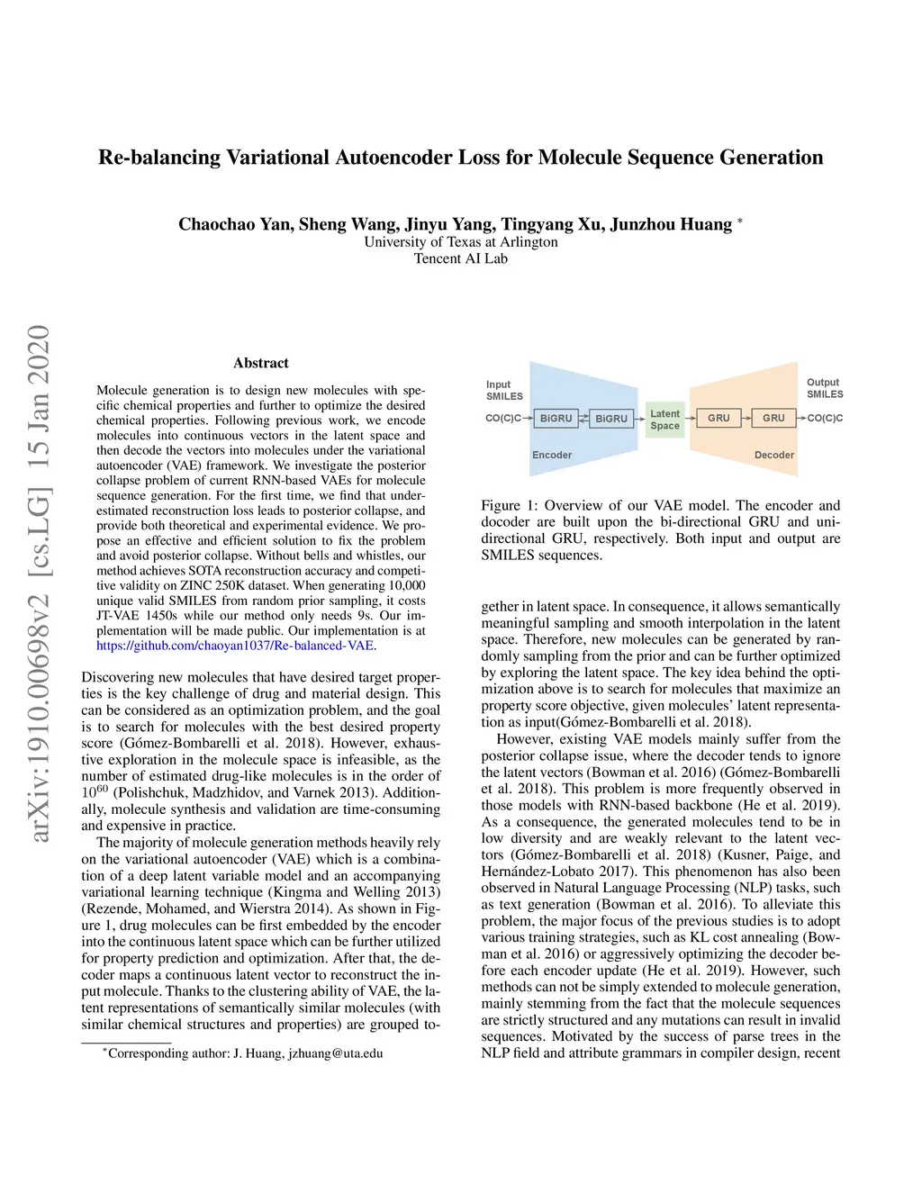 Re-balancing Variational Autoencoder Loss for Molecule Sequence
