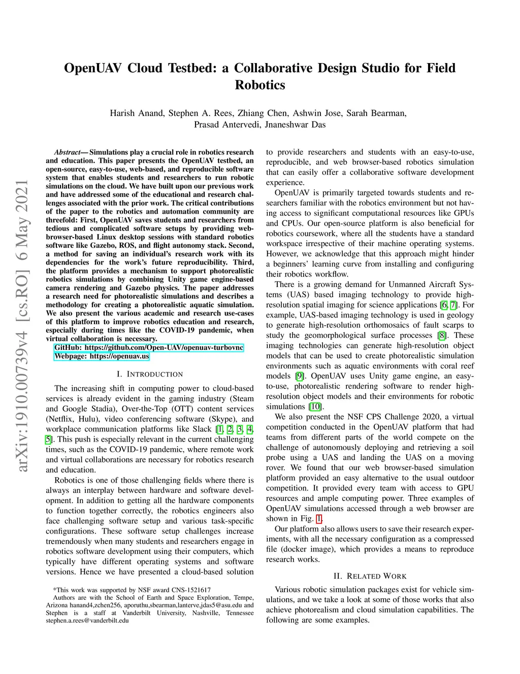 OpenUAV Cloud Testbed: a Collaborative Design Studio for Field Robotics
