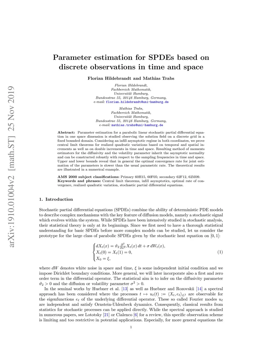 Parameter estimation for a parabolic linear stochastic partial differential equation in one space dimension is studied observing the solution field on a discrete grid in a fixed bounded domain. Considering an infill asymptotic regime in both coordinates, we prove central limit theorems for realized quadratic variations based on temporal and spatial increments as well as on double increments in time and space. Resulting method of moments estimators for the diffusivity and the volatility parameter inherit the asymptotic normality and can be constructed robustly with respect to the sampling frequencies in time and space. Upper and lower bounds reveal that in general the optimal convergence rate for joint estimation of the parameters is slower than the usual parametric rate. The theoretical results are illustrated in a numerical example.