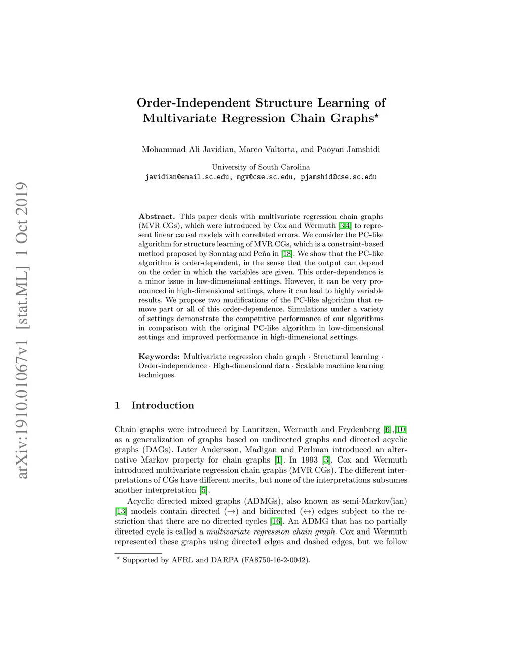 Order-Independent Structure Learning of Multivariate Regression Chain
