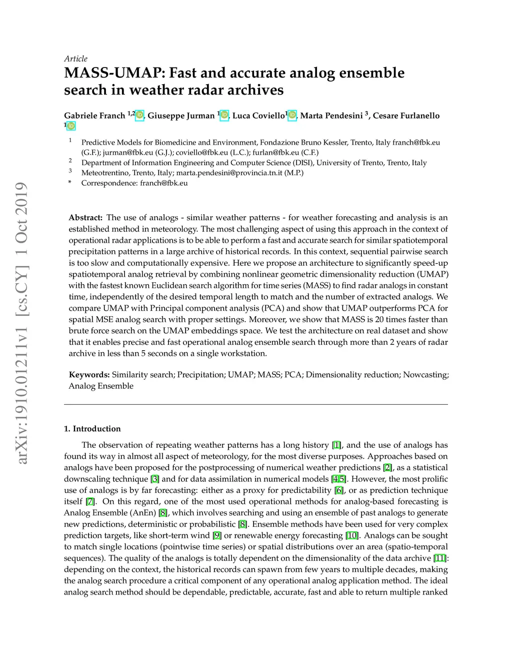 MASS-UMAP: Fast and accurate analog ensemble search in weather radar
