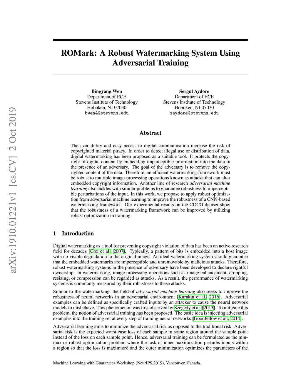 ROMark: A Robust Watermarking System Using Adversarial Training