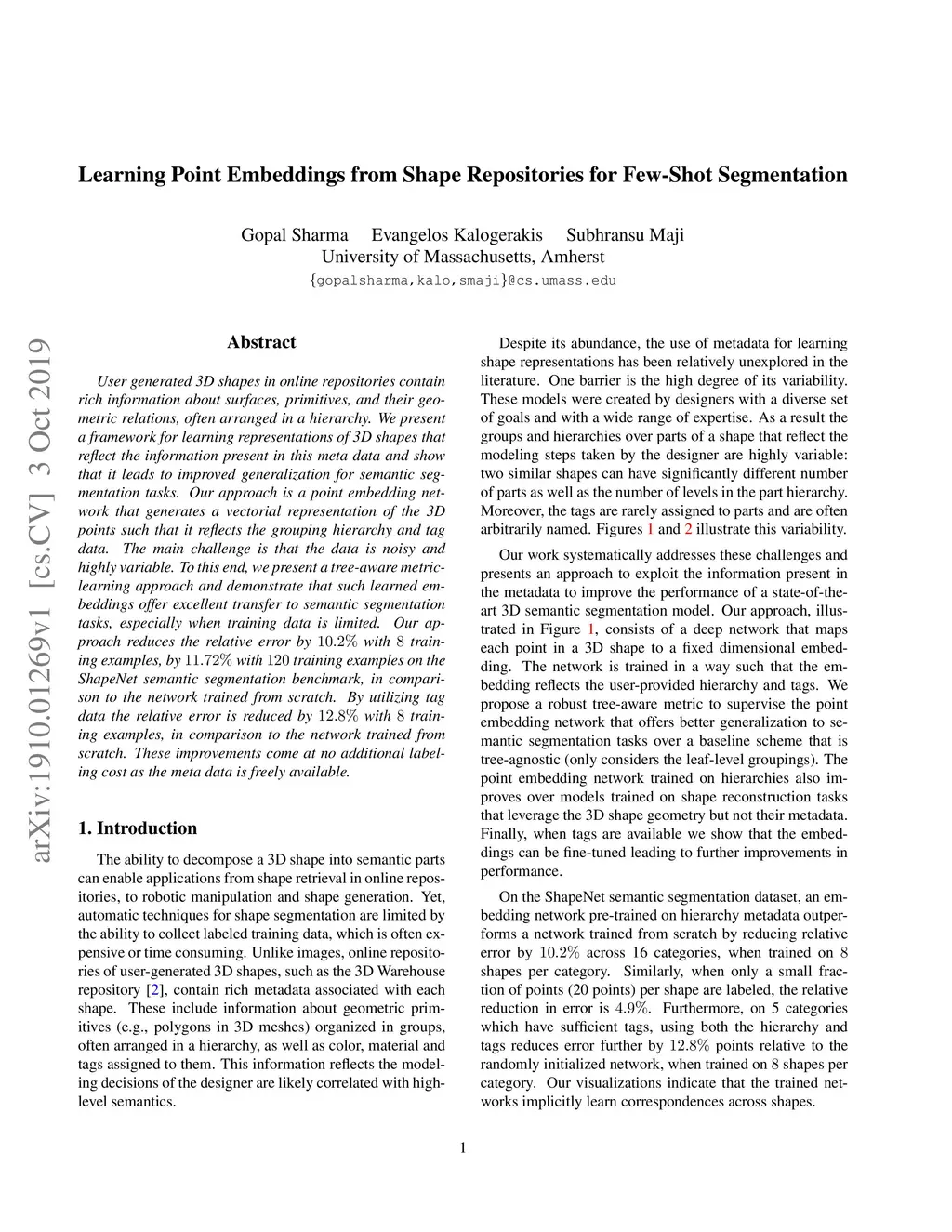 Learning Point Embeddings from Shape Repositories for Few-Shot