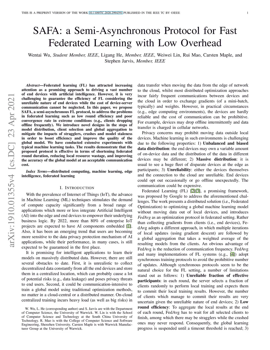 SAFA: a Semi-Asynchronous Protocol for Fast Federated Learning with Low