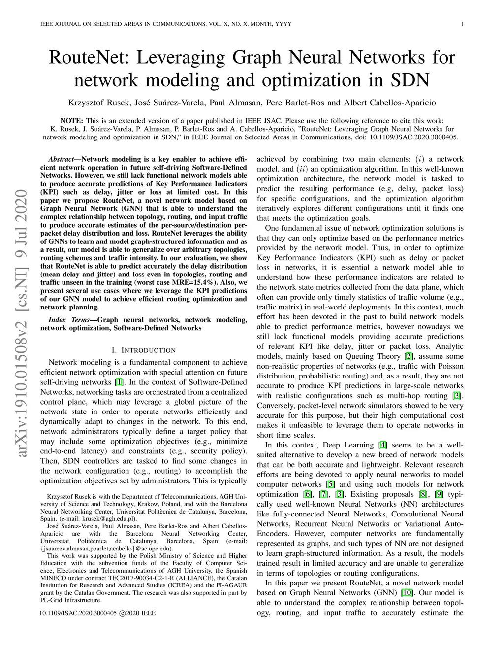RouteNet: Leveraging Graph Neural Networks for network modeling and