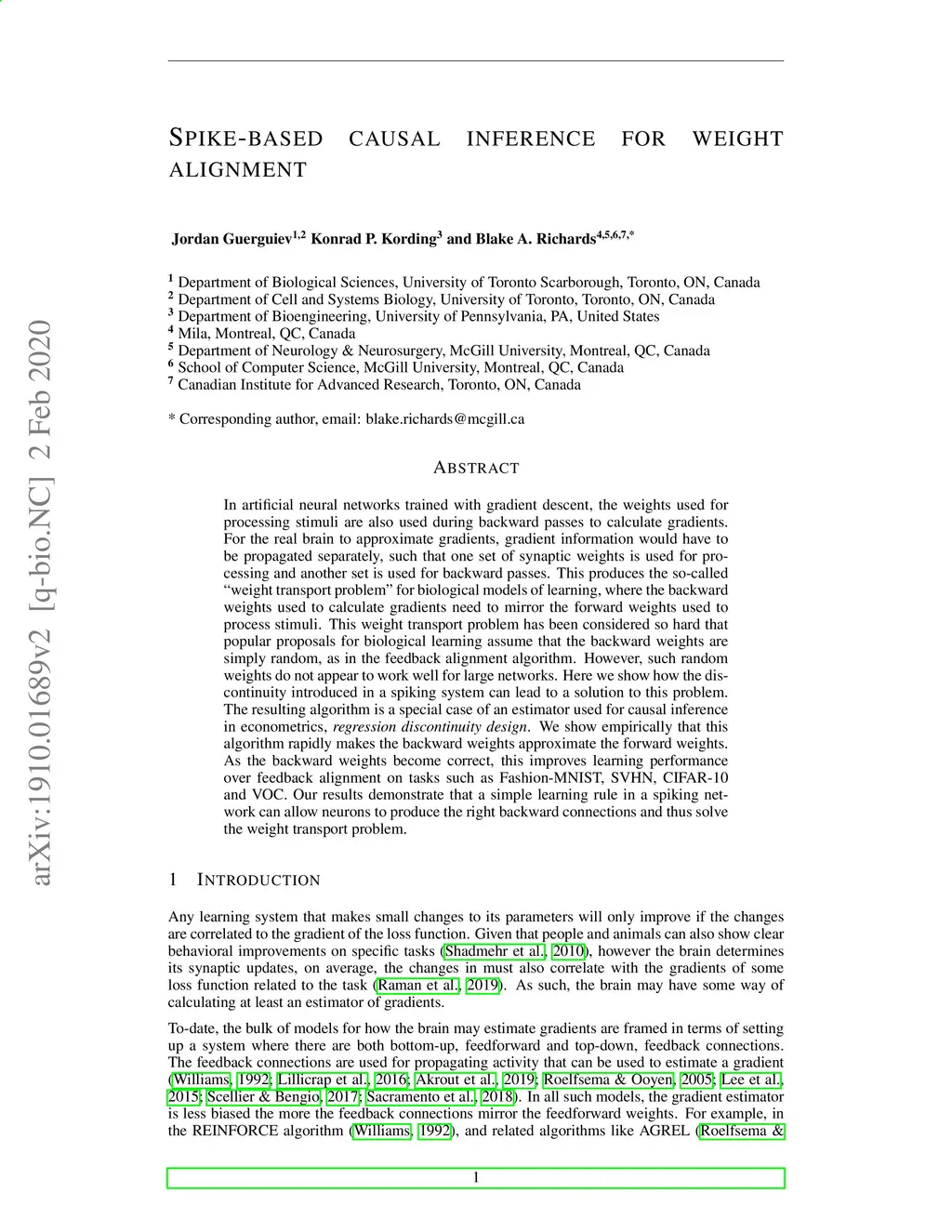 Spike-based causal inference for weight alignment