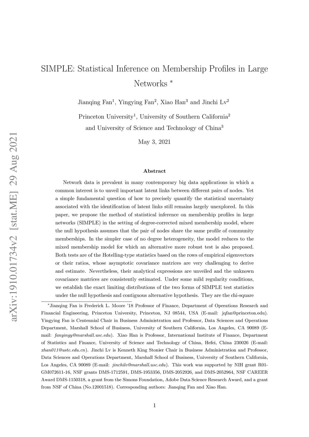 SIMPLE: Statistical Inference on Membership Profiles in Large Networks