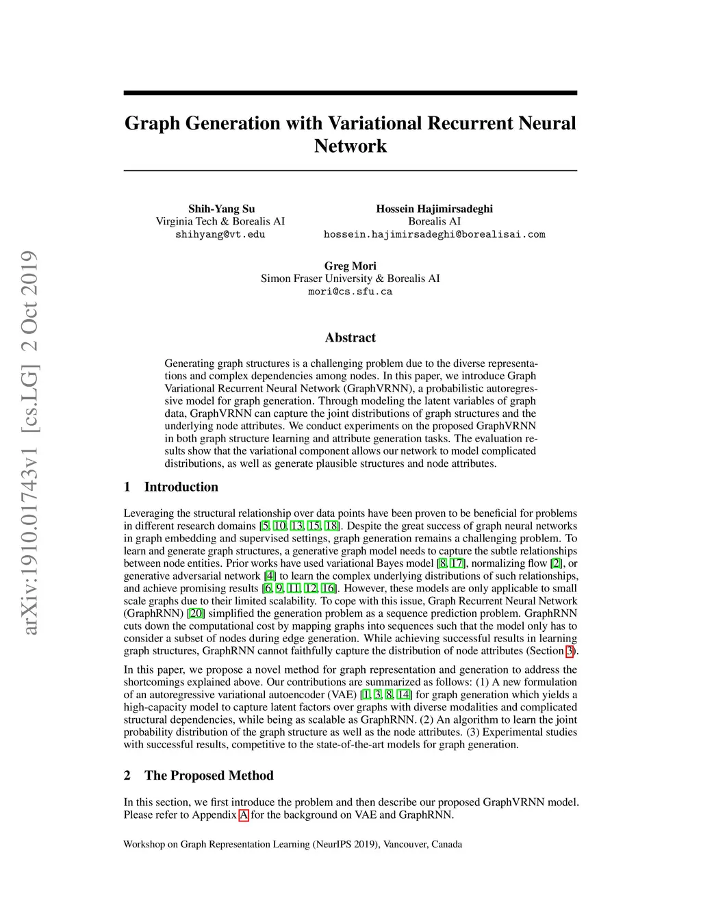 Graph Generation with Variational Recurrent Neural Network