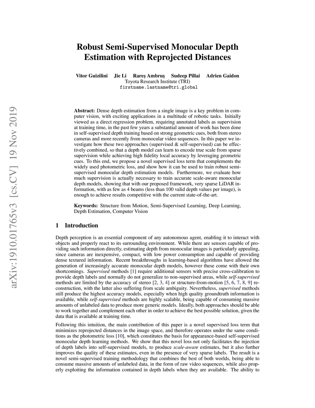 Robust Semi-Supervised Monocular Depth Estimation with Reprojected