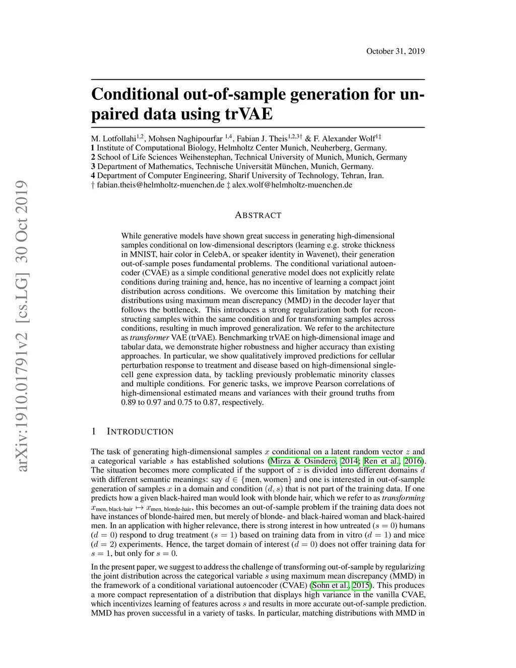 Conditional out-of-sample generation for unpaired data using trVAE