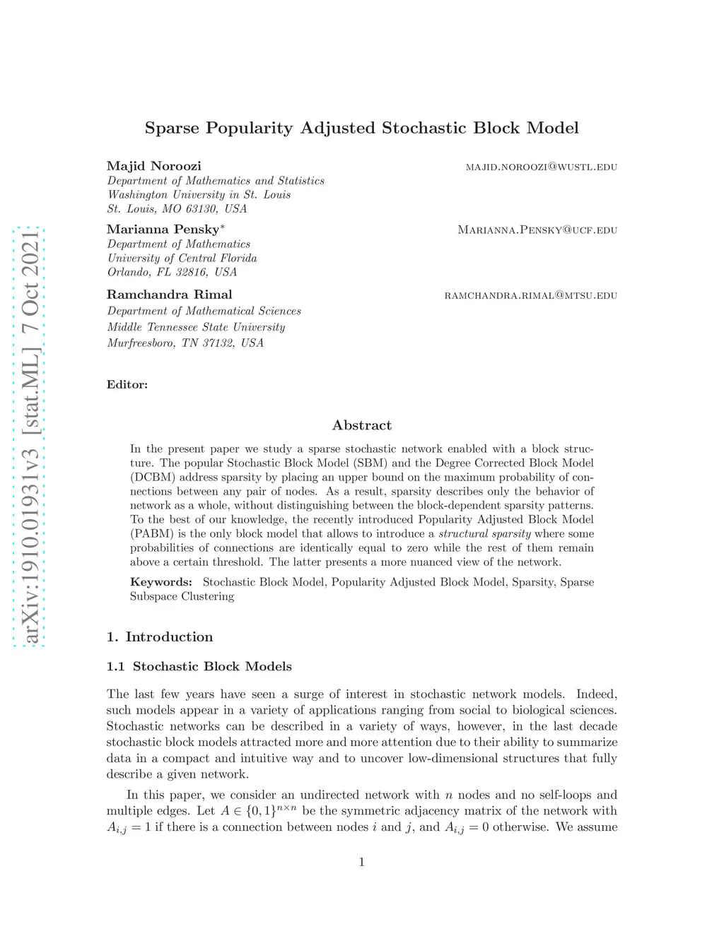 In the present paper we study a sparse stochastic network enabled with a block structure. The popular Stochastic Block Model (SBM) and the Degree Corrected Block Model (DCBM) address sparsity by placing an upper bound on the maximum probability of connections between any pair of nodes. As a result, sparsity describes only the behavior of network as a whole, without distinguishing between the block-dependent sparsity patterns. To the best of our knowledge, the recently introduced Popularity Adjusted Block Model (PABM) is the only block model that allows to introduce a {\it structural sparsity} where some probabilities of connections are identically equal to zero while the rest of them remain above a certain threshold. The latter presents a more nuanced view of the network.
