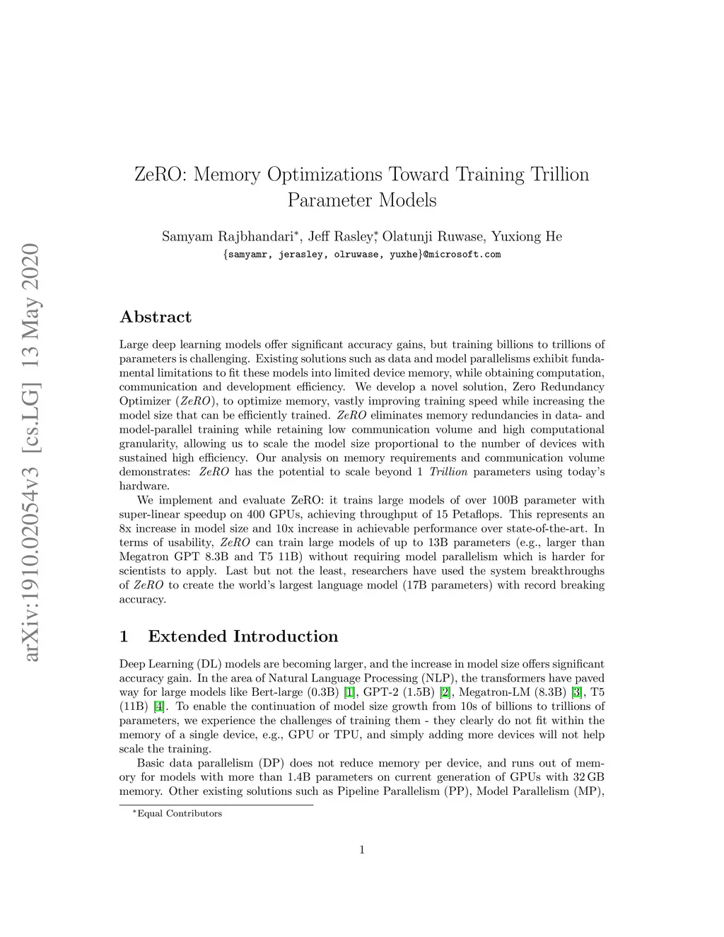 ZeRO: Memory Optimizations Toward Training Trillion Parameter Models