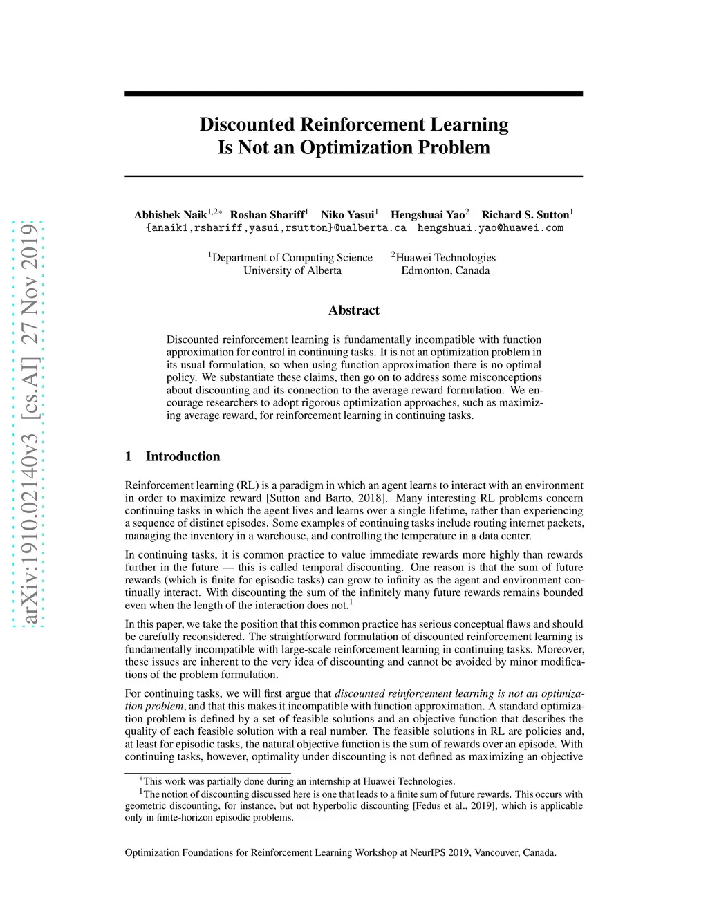 Discounted Reinforcement Learning Is Not an Optimization Problem