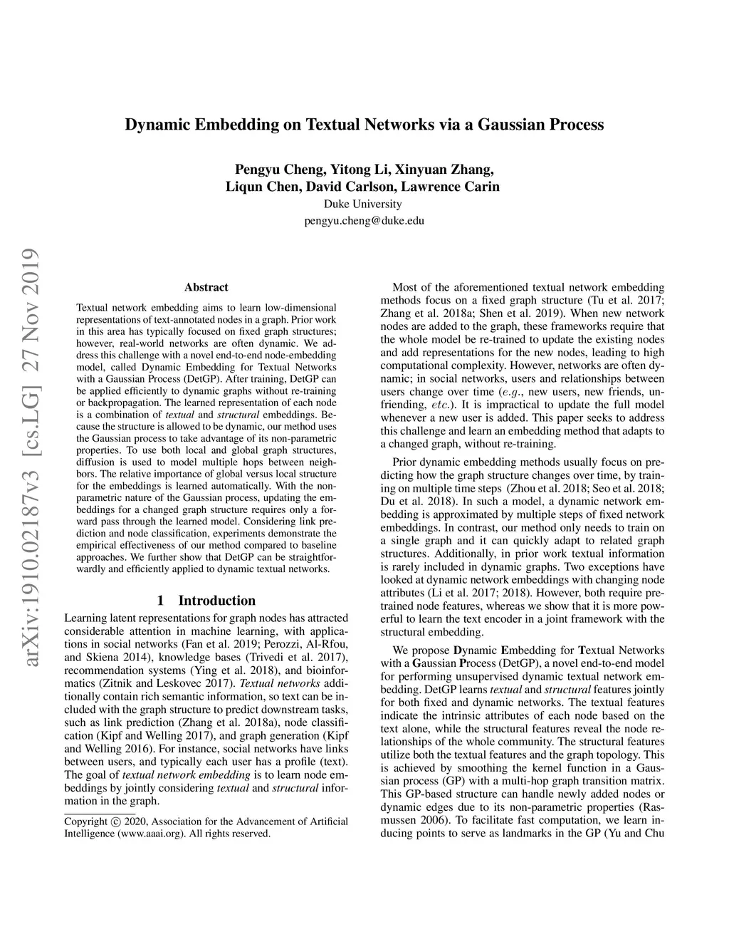 Dynamic Embedding on Textual Networks via a Gaussian Process