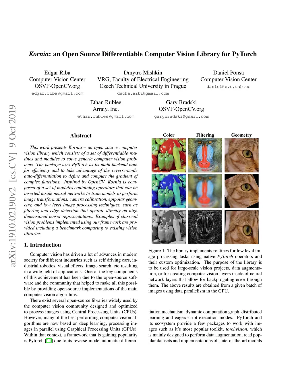 Kornia: an Open Source Differentiable Computer Vision Library for