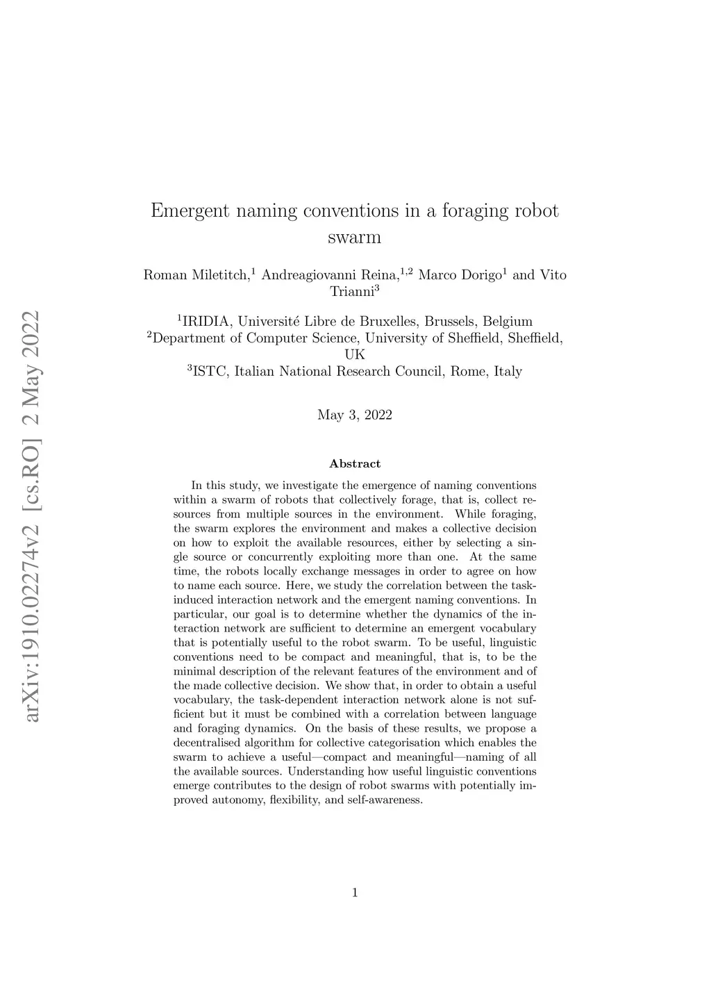 Emergent naming conventions in a foraging robot swarm